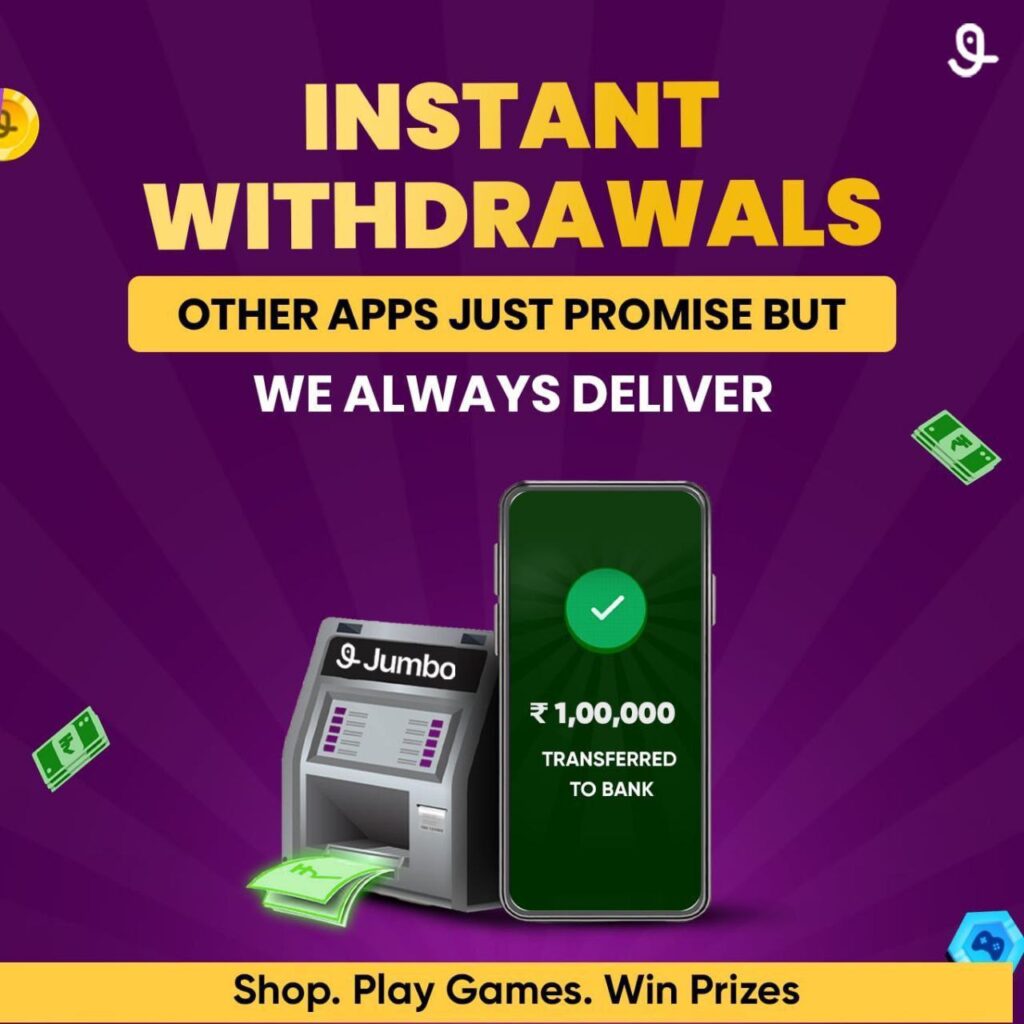 अगर आपको JUMBO FANTASY पर खलेना है तो आप खेल सकते हो यहाँ पर आपका WITHDRAWAL INSTANT ही आपके BANK ACCOUNT में क्रेडिट कर दिया जाता है। ..और अगर ज्यादा देरी भी होती है तो आपका WITHDRAWAL, SAME DAY ही मिल जाता है.