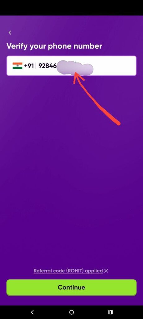 STEP 4 – अब आप अपना MOBILE नंबर डालके CONTINUE पर क्लिक करें
