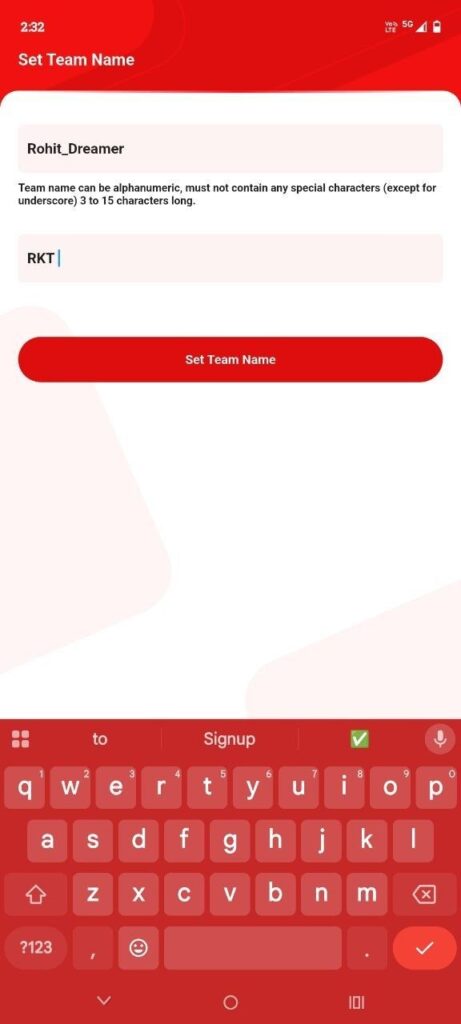 Registration ke baad aapko apna unique Team Name set karna hoga. Yaad rakhein, team name 3 se 15 characters ke beech hona chahiye (aap sirf underscore ‘_’ use kar sakte hain).